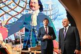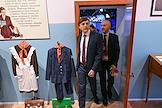 Министр просвещения России Сергей Кравцов (в центре) и заместитель министра просвещения России Владимир Желонкин (справа) во время посещения выставки "85 лет системе СПО: сила в мастерстве!" на территории национального центра "Россия".