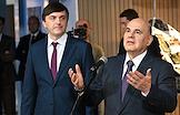 Министр просвещения России Сергей Кравцов (слева) и заместитель министра просвещения России Владимир Желонкин (справа) во время посещения выставки "85 лет системе СПО: сила в мастерстве!" на территории национального центра "Россия".