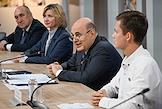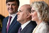 Председатель правительства России Михаил Мишустин во время встречи с победителями и призерами национальных чемпионатов мастерства конкурса "Мастер года", а также студентами и директорами кластеров федерального проекта "Профессионалитет", в Национальном центре "Россия".