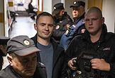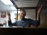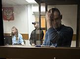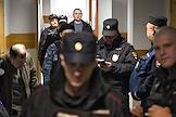 Избрание меры пресечения заместителю председателя партии "Яблоко", бывшему руководителю фракции "Яблоко" в Мосгордуме Максиму Круглову, обвиняемому в публичном распространении заведомо ложной информации об использовании Вооруженных Сил России, в Замоскворецком районном суде. Заместитель председателя партии "Яблоко", бывший руководитель фракции партии в Мосгордуме Максим Круглов (в центре) во время заседания суда.