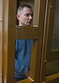 Избрание меры пресечения заместителю председателя партии "Яблоко", бывшему руководителю фракции "Яблоко" в Мосгордуме Максиму Круглову, обвиняемому в публичном распространении заведомо ложной информации об использовании Вооруженных Сил России, в Замоскворецком районном суде. Заместитель председателя партии "Яблоко", бывший руководитель фракции партии в Мосгордуме Максим Круглов во время заседания суда.