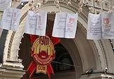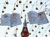 Жанровая фотография. Инсталляция из тетрадных листов ко Дню учителя на здании ГУМа.