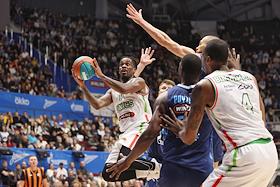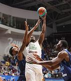 Единая лига ВТБ по баскетболу. Матч между командами "Зенит" (Санкт-Петербург) - УНИКС (Казань) на КСК "Арена". Игрок команды УНИКС Дишон Пьерр (в центре) во время матча.