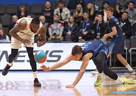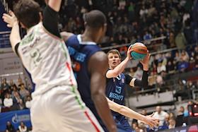 Единая лига ВТБ по баскетболу. Матч между командами "Зенит" (Санкт-Петербург) - УНИКС (Казань) на КСК "Арена". Игрок команды "Зенит" Алекс Пойтресс (слева) во время матча.