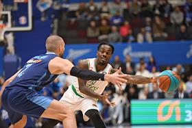 Единая лига ВТБ по баскетболу. Матч между командами "Зенит" (Санкт-Петербург) - УНИКС (Казань) на КСК "Арена". Игрок команды "Зенит" Трент Фрейзер (в центре) во время матча.