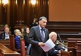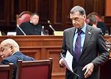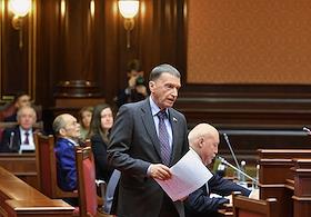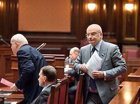 Слушание дела о проверке конституционности пунктов 1 и 2 статьи 424 ГК РФ, пункта 1 статьи 168 НК РФ, а также подпункта "а" пункта 1 статьи 1 ФЗ от 31 июля 2020 года "О внесении изменений в часть вторую Налогового кодекса Российской Федерации" в Конституционном суде (КС) России. Член комитета Государственной думы (ГД) России по государственному строительству и законодательству, полномочный представитель ГД России в КС России Юрий Петров во время заседания.