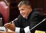 Слушание дела о проверке конституционности пунктов 1 и 2 статьи 424 ГК РФ, пункта 1 статьи 168 НК РФ, а также подпункта "а" пункта 1 статьи 1 ФЗ от 31 июля 2020 года "О внесении изменений в часть вторую Налогового кодекса Российской Федерации" в Конституционном суде (КС) России. Судья КС России Сергей Князев перед началом заседания суда.