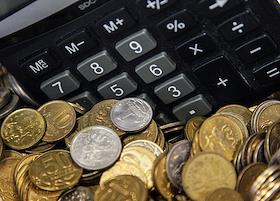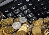Жанровая фотография. Металлические российские мелкие деньги (копейки) и калькулятор.