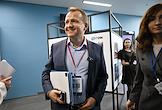Форум "Общественный транспорт 2025" в конгресс-центре Московского Государственного Технического Университета (МГТУ) имени Н.Э. Баумана. Генеральный директор "Мосгортранс" Николай Асаул (слева) перед началом заседания форума.