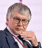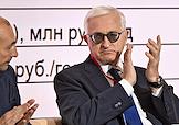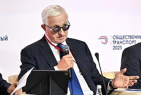 Форум "Общественный транспорт 2025" в конгресс-центре Московского Государственного Технического Университета (МГТУ) имени Н.Э. Баумана. Пленарное заседание: "Новый общественный транспорт: как модернизация транспорта меняет наши города". Президент Российского союза промышленников и предпринимателей Александр Шохин во время заседания.