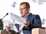 Форум "Общественный транспорт 2025" в конгресс-центре Московского Государственного Технического Университета (МГТУ) имени Н.Э. Баумана. Пленарное заседание: "Новый общественный транспорт: как модернизация транспорта меняет наши города". Заместитель генерального директора АО "Государственная транспортная лизинговая компания" Владимир Добровольский во время заседания.