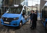 Форум "Общественный транспорт 2025" в конгресс-центре Московского Государственного Технического Университета (МГТУ) имени Н.Э. Баумана. Выставка в рамках форума. Электробус малого класса "ГАЗель e-City" на выставке.
