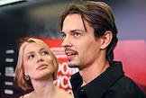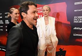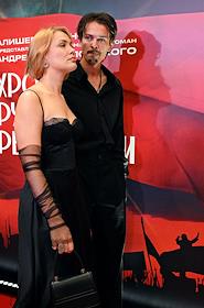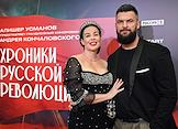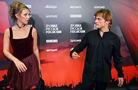 Премьерный показ киноромана режиссера Андрея Кончаловского "Хроники русской революции" в кинотеатре "Октябрь". Актеры Ирина Рудоминская (слева) и Максим Колесниченко (справа) на премьере.