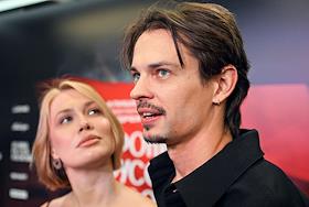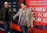 Премьерный показ киноромана режиссера Андрея Кончаловского "Хроники русской революции" в кинотеатре "Октябрь". Актеры Сергей Гармаш и Ксения Алферова на премьере.