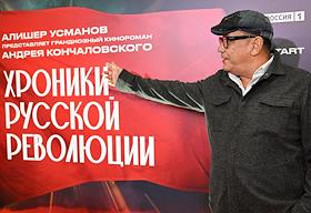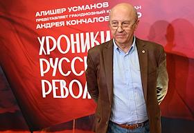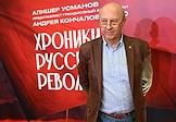 Премьерный показ киноромана режиссера Андрея Кончаловского "Хроники русской революции" в кинотеатре "Октябрь". Историк Андрей Фурсов на премьере.
