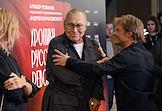 Премьерный показ киноромана режиссера Андрея Кончаловского "Хроники русской революции" в кинотеатре "Октябрь". Режиссер Андрей Кончаловский (в центре) и актер Евгений Ткачук (справа) на премьере.