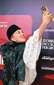 Премьерный показ киноромана режиссера Андрея Кончаловского "Хроники русской революции" в кинотеатре "Октябрь". Актриса Сабина Ахметова на премьере.