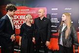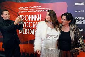 Премьерный показ киноромана режиссера Андрея Кончаловского "Хроники русской революции" в кинотеатре "Октябрь". Справа налево: актриса Ольга Лерман, режиссер Антон Маслов и сценарист Мария Маслова на премьере.