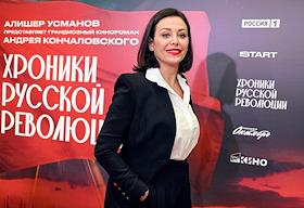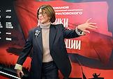 Премьерный показ киноромана режиссера Андрея Кончаловского "Хроники русской революции" в кинотеатре "Октябрь". Президент Специальной Олимпиады России Ольга Слуцкер на премьере.