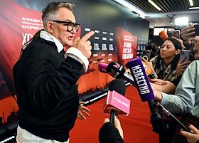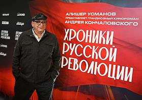 Премьерный показ киноромана режиссера Андрея Кончаловского "Хроники русской революции" в кинотеатре "Октябрь". Режиссер Егор Кончаловский на премьере.