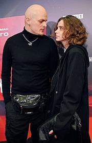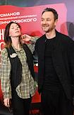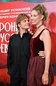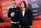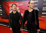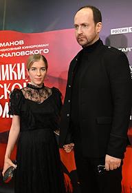Премьерный показ киноромана режиссера Андрея Кончаловского "Хроники русской революции" в кинотеатре "Октябрь". Актер Павел Деревянко (слева) с супругой дизайнером Зоей Фуць на премьере.