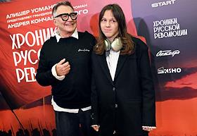 Премьерный показ киноромана режиссера Андрея Кончаловского "Хроники русской революции" в кинотеатре "Октябрь". Актер Никита Ефремов с сестрой, актрисой Верой Ефремовой на премьере.