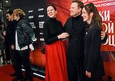 Премьерный показ киноромана режиссера Андрея Кончаловского "Хроники русской революции" в кинотеатре "Октябрь". Актер Александр Фисенко с супругой Юлией и детьми на премьере.