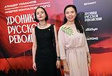 Премьерный показ киноромана режиссера Андрея Кончаловского "Хроники русской революции" в кинотеатре "Октябрь". Актриса Диана Милютина (справа) на премьере.