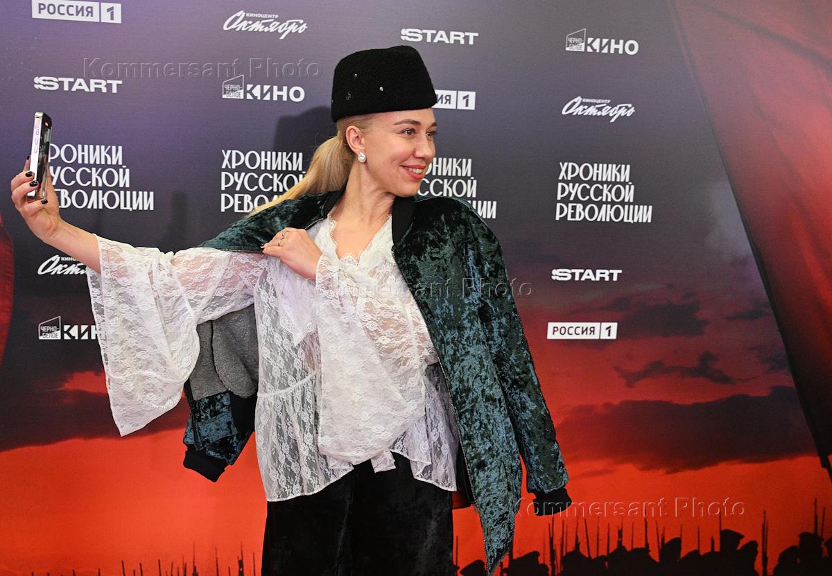 Премьерный показ киноромана режиссера Андрея Кончаловского "Хроники русской революции" в кинотеатре "Октябрь". Актриса Дарья Мороз на премьере.