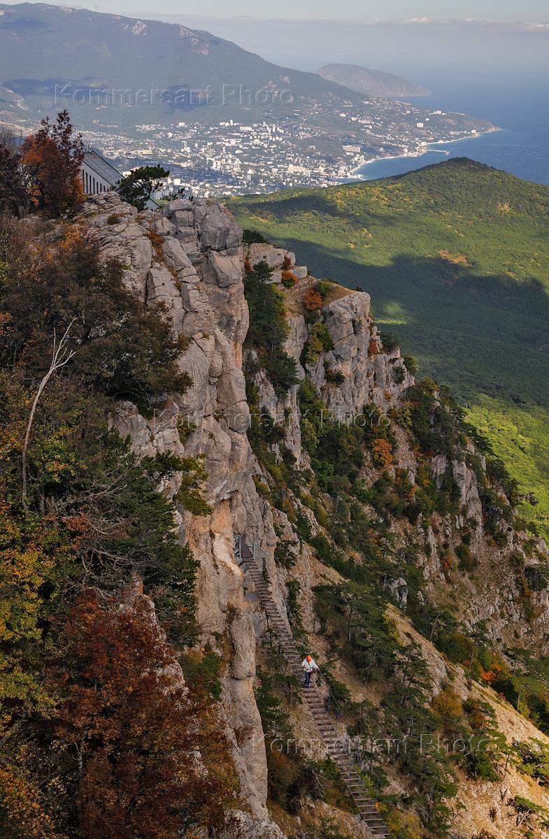Виды Ялты. Жанровая фотография. Строительная площадка на фоне замка "Ласточкино гнездо".