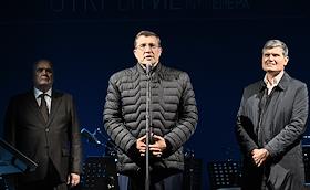 Церемония открытия отреставрированной гиперболоидной башни инженера Владимира Шухова на территории индустриально-туристического центра "Шухов-парк". Председатель правления АО "Объединённая металлургическая компания" Анатолий Седых на церемонии.