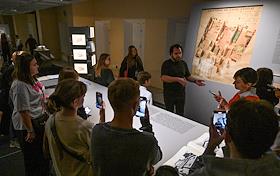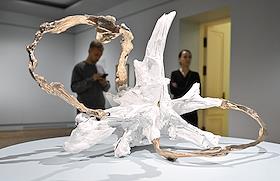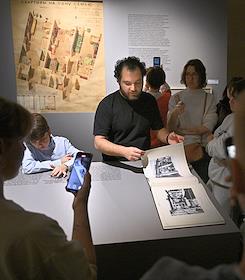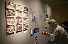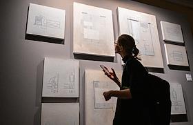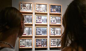 Пресс-показ выставки "Счастливая жизнь в квадрате. Выксунский эксперимент и индустриальное домостроение в СССР" и церемония открытия третьей части выставочного цикла "Путевые заметки" - "Привал", представляющего произведения из коллекции Ирины и Анатолия Седых. Посетители на выставке "Путевые заметки" - "Привал".
