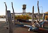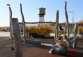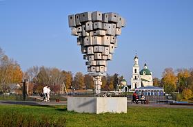 Церемония открытия отреставрированной гиперболоидной башни инженера Владимира Шухова на территории индустриально-туристического центра "Шухов-парк" и пресс-показ выставки "Счастливая жизнь в квадрате. Выксунский эксперимент и индустриальное домостроение в СССР" в Музее истории ВМЗ и в квартире первого экспериментального дома в Выксе. Жанровая фотография. Арт-объект "На птичьей волне" на набережной Верхневыксунского пруда.
