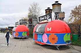 Виды Выксы. Два мобильных кафе на набережной Верхнего пруда.