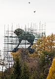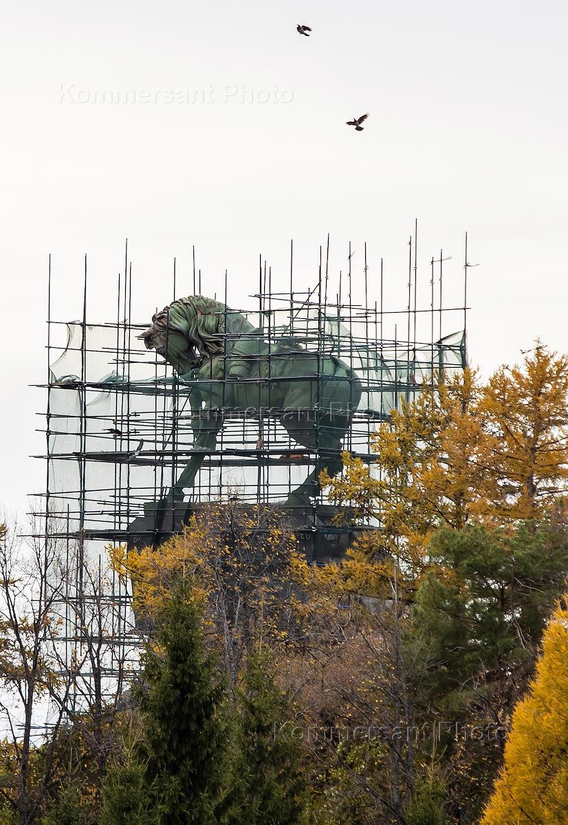 Демонтаж памятника башкирскому герою Салавату Юлаеву для реконструкции.