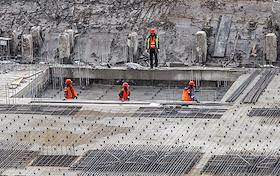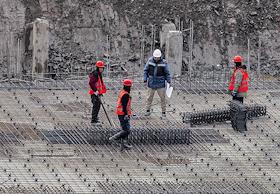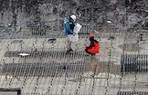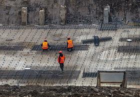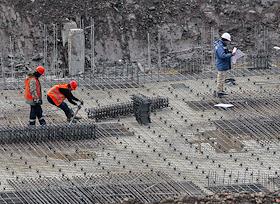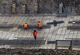 Жанровая фотография. Рабочие на стройке многоквартирного жилого дома.