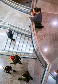 Жанровая фотография. Зрители перед спектаклем на лестнице в фойе Новой сцены Государственного академического Мариинского театра.