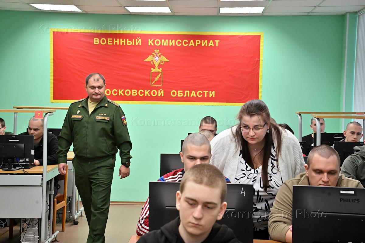 Осенний призыв в Вооруженные силы России. Отправка призывников к месту прохождения военной службы. Призывники в сборном пункте военного комиссариата.