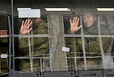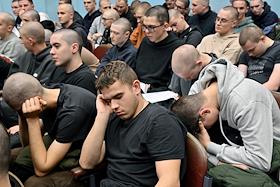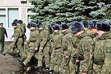 Осенний призыв в Вооруженные силы России. Сборный пункт военного комиссариата. Жанровая фотография.