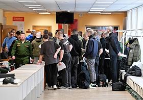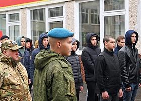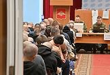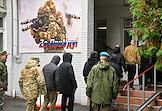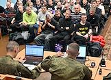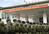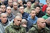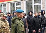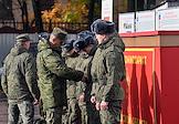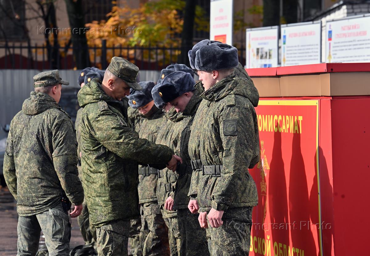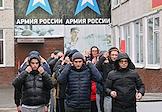 Осенний призыв в Вооруженные силы России. Отправка призывников к месту прохождения военной службы в сборном пункте военного комиссариата.