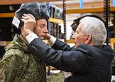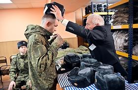 Осенний призыв в Вооруженные силы России. Отправка призывников к месту прохождения военной службы. Выдача формы призывникам в сборном пункте военного комиссариата.