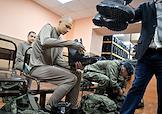 Осенний призыв в Вооруженные силы России. Отправка призывников к месту прохождения военной службы. Призывники во время медицинского осмотра в сборном пункте военного комиссариата.