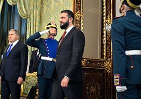 Российско-сирийские переговоры в Кремле. Жанровая фотография. Военнослужащий Президентского полка во время церемонии.