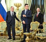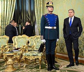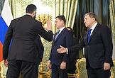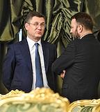 Российско-сирийские переговоры в Кремле. Заместитель председателя правительства России Александр Новак (слева) и помощник президента России Юрий Ушаков (справа) перед началом переговоров.