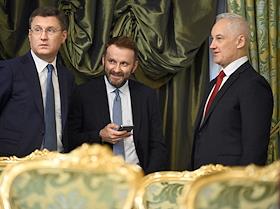 Российско-сирийские переговоры в Кремле. Слева направо: заместитель председателя правительства России Александр Новак, заместитель руководителя администрации президента России Максим Орешкин и министр обороны России Андрей Белоусов перед началом переговоров.