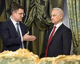 Российско-сирийские переговоры в Кремле. Заместитель председателя правительства России Александр Новак (слева) и министр обороны России Андрей Белоусов (справа) перед началом переговоров.