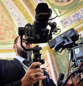 Российско-сирийские переговоры в Кремле. Жанровая фотография. Журналист с фотоаппаратурой во время переговоров.