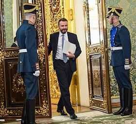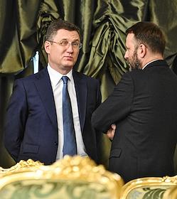 Российско-сирийские переговоры в Кремле. Заместитель руководителя администрации президента России Максим Орешкин (справа) и заместитель председателя Правительства России Александр Новак (слева) перед началом переговоров.