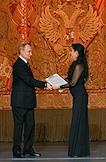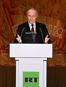 Празднование 20-летия международного телеканала RT (Russia Today) в Государственном академическом Большом театре. Президент России Владимир Путин во время празднования.