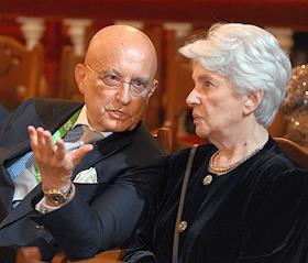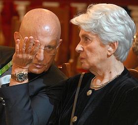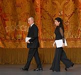 Празднование 20-летия международного телеканала RT (Russia Today) в Государственном академическом Большом театре. Политолог, научный руководитель факультета мировой экономики и мировой политики НИУ ВШЭ Сергей Караганов (слева) и президент Русского общественного фонда Александра Солженицына Наталья Солженицына (справа) во время празднования.